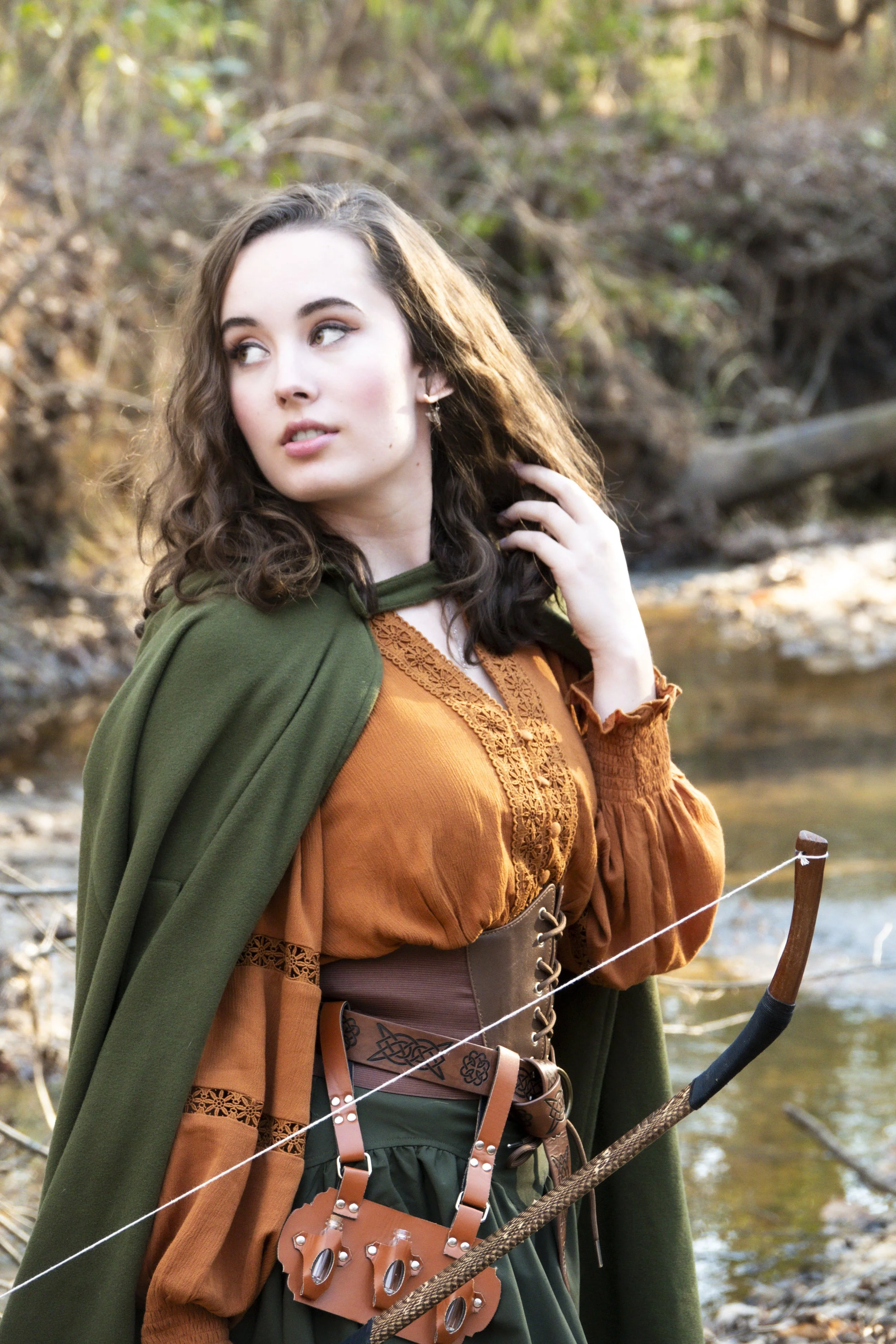 Elven Ranger The wind through the tree branches is the only sound as she slips silently through the forest… Get the look Shirt Hollow out Smocked Waist V-Neck Cotton Pullover Top Shop Skirt Renaissance Elastic High Waist Swing Skirt with Pockets Shop Corset Belt Renaissance Belts Elastic Lace-up Waistband Shop Cloak The Lord of the Rings Renaissance Hooded Cape Cloak Shop